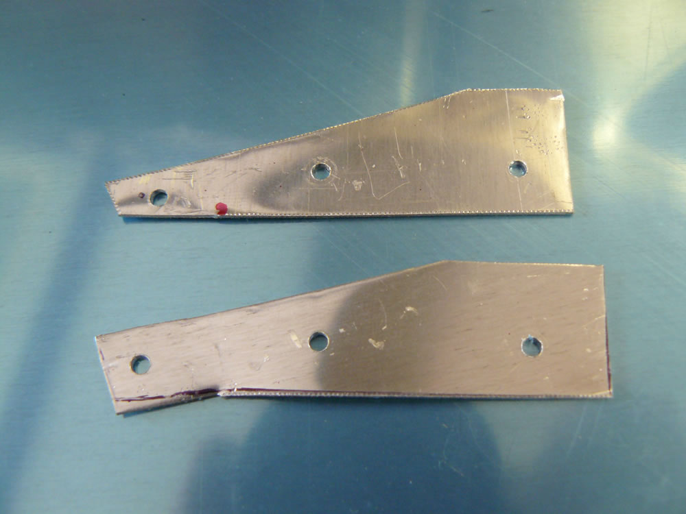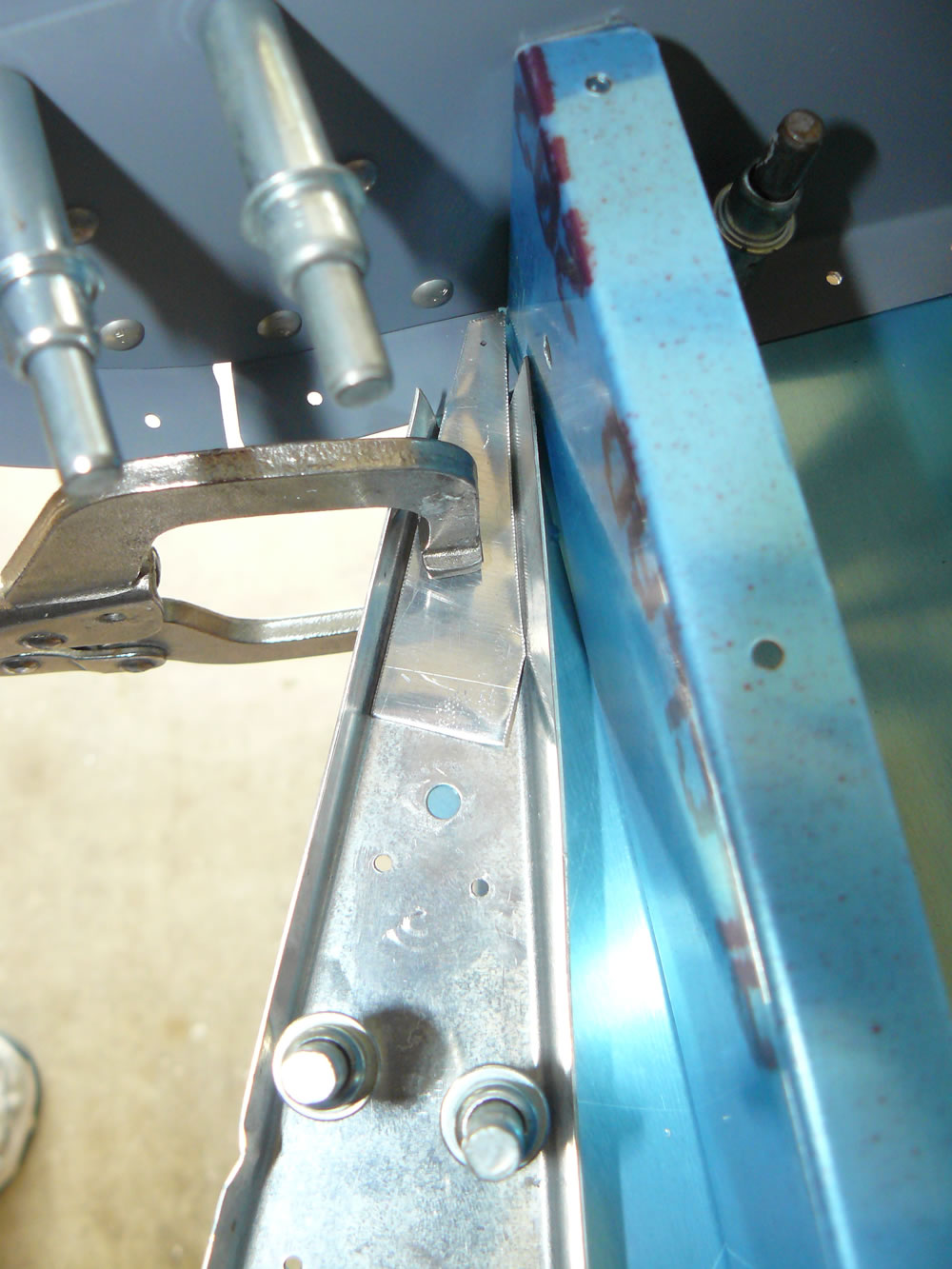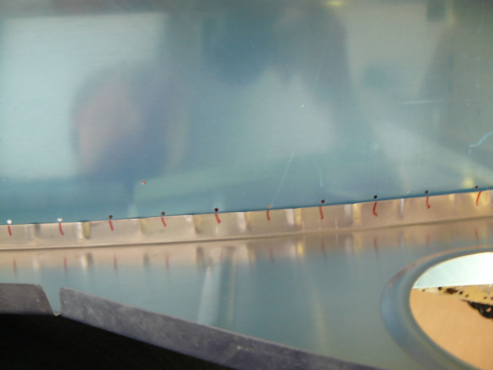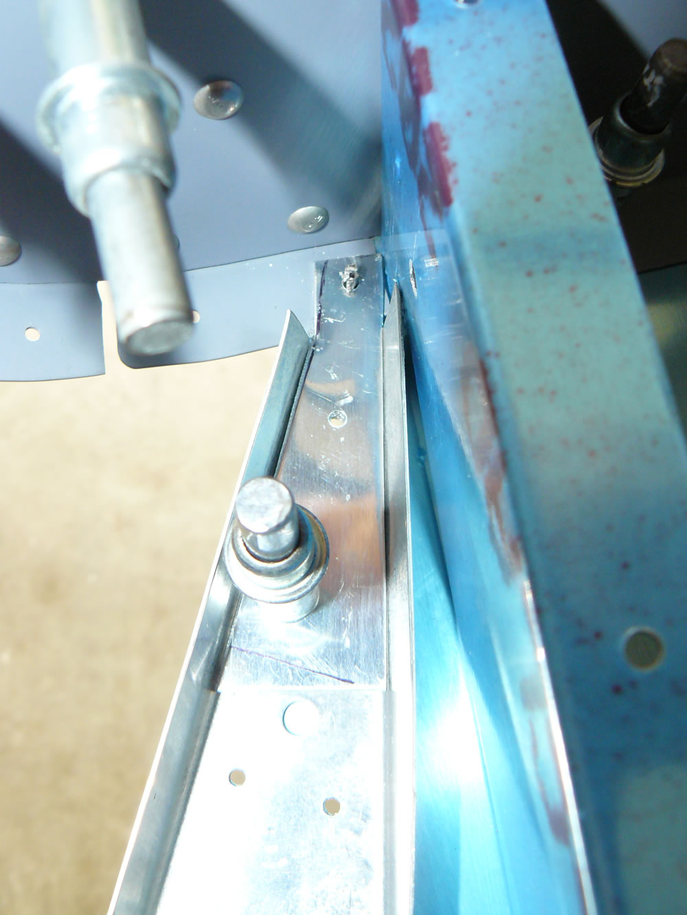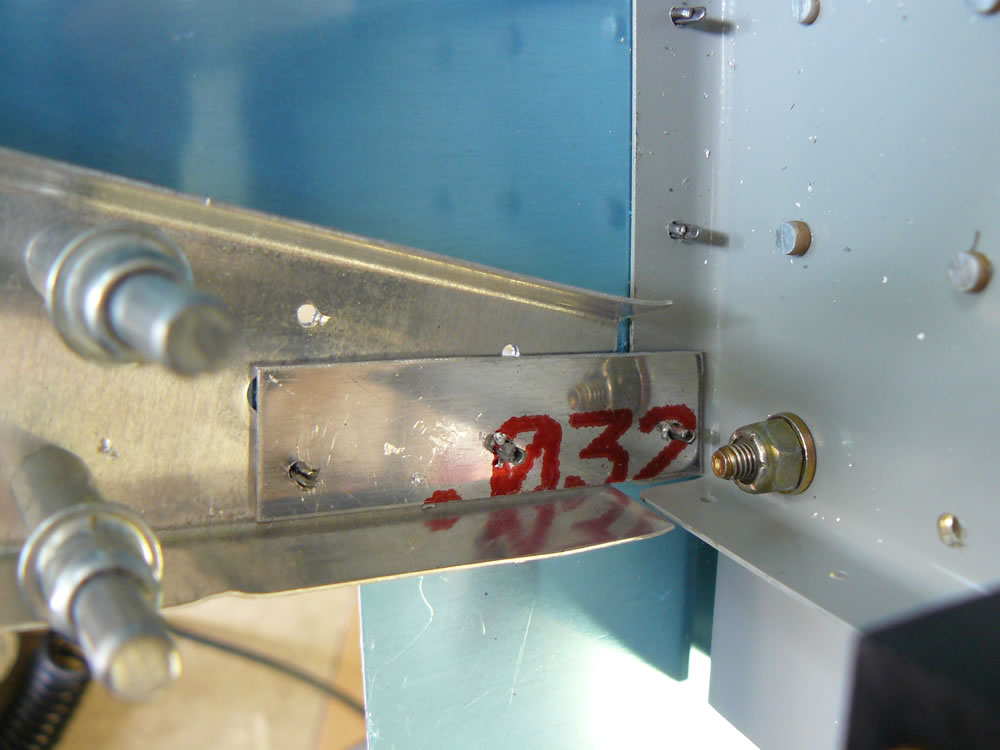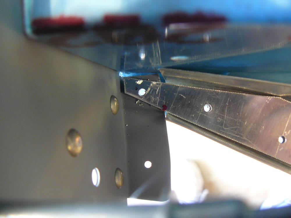 The forward one is a lot more straightforward. I had seen this mentioned on other blogs. The size per the plans encroaches on a neighboring rivet hole, so I just trimmed the edge to fit nicely. Again, here’s before and after: