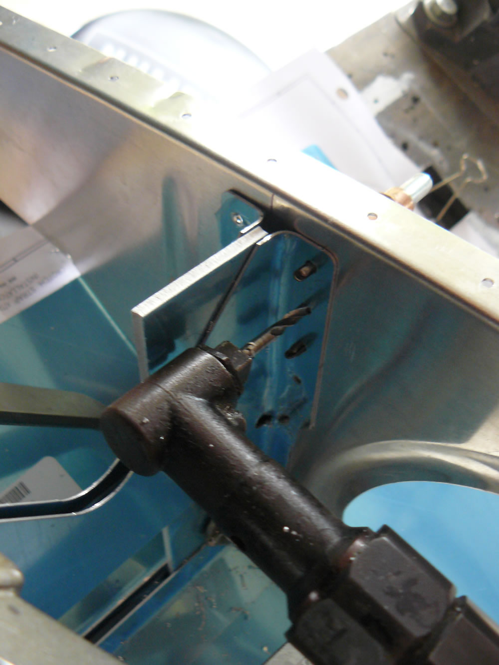 I drilled the holes using my angle drill. Then I aligned the bracket to the other rib, clamped it in place, and drilled it.