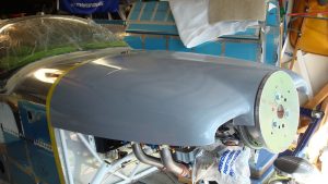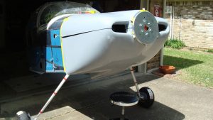 I placed the top cowl on the engine. I don’t have much extra material at the firewall to play with, but it’ll work out.
