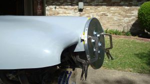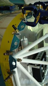 I tried using a strap to hold it together, but the strap just slid forward because there’s really nothing for it to hold onto. I temp-drilled a couple of holes for some clecos to hold the cowls in place. It has taken a little while just playing with the cowls, and standing back and thinking about what’s going on, but I eventually developed a plan.